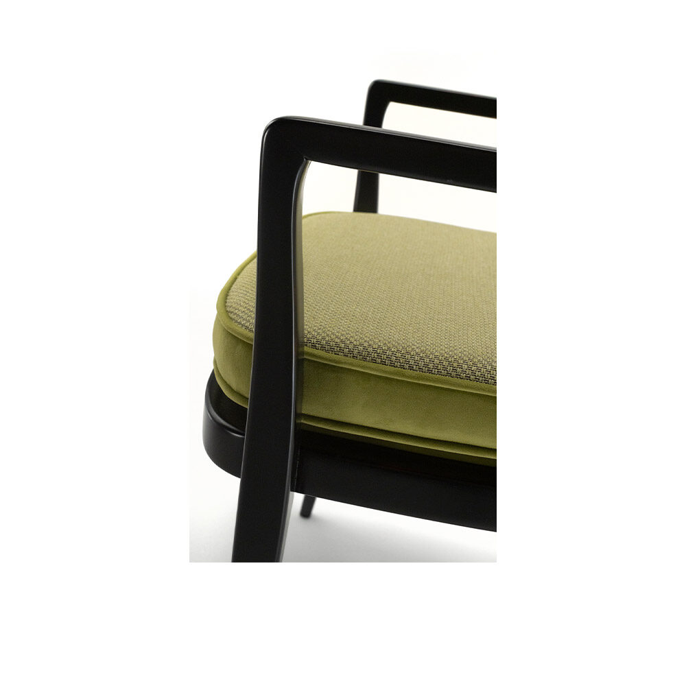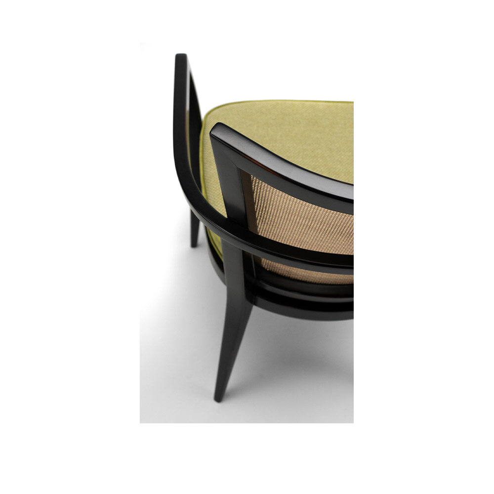 Ce fauteuil a une structure en bois de hêtre, enrichie de détails en contreplaqué. Il est conçu pour allier beauté et solidité.