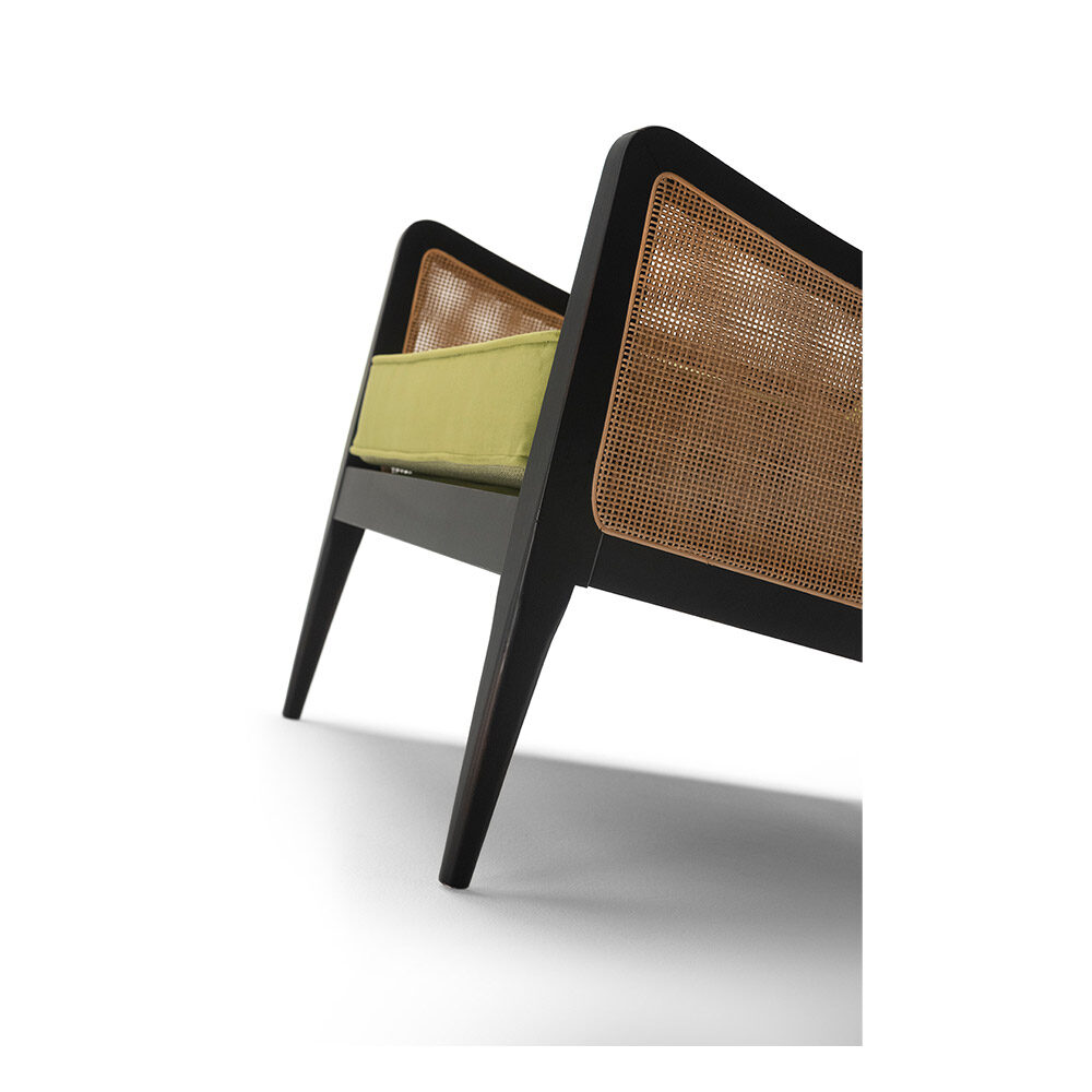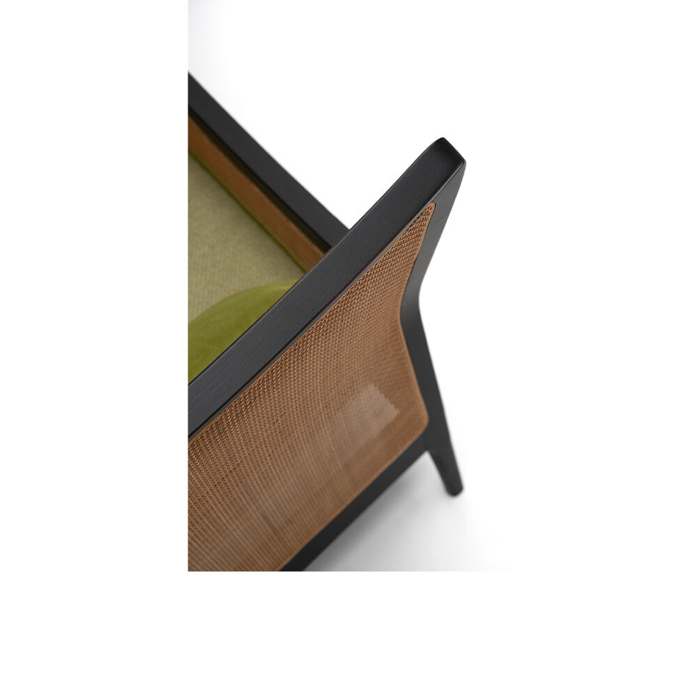 Ce fauteuil a une structure en bois de hêtre, enrichie de détails en contreplaqué. Il est conçu pour allier beauté et solidité.