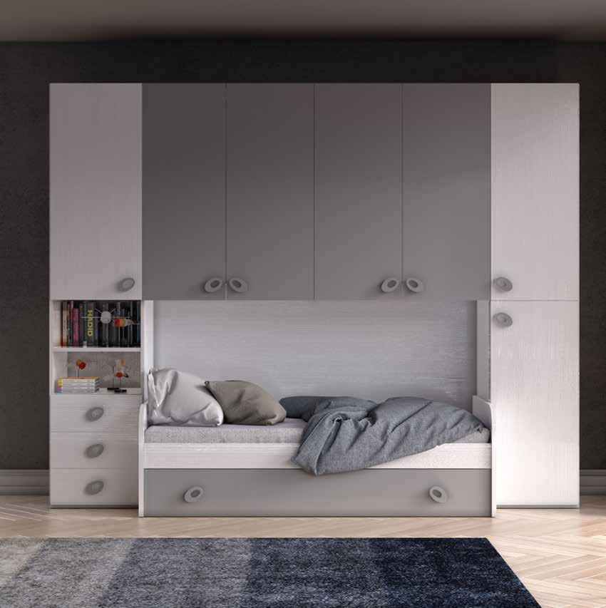 Un espace douillet où les rêves prennent forme. Notre chambre pont, avec son délicat cadre en orme et ses façades en basalte et orme, crée une atmosphère chaleureuse et relaxante. Les deux sommiers, l'un à lattes pour un soutien enveloppant et l'autre en maille pour une douce douceur, sont prêts à vous bercer. Un refuge parfait pour grandir, rêver et créer des souvenirs inoubliables.