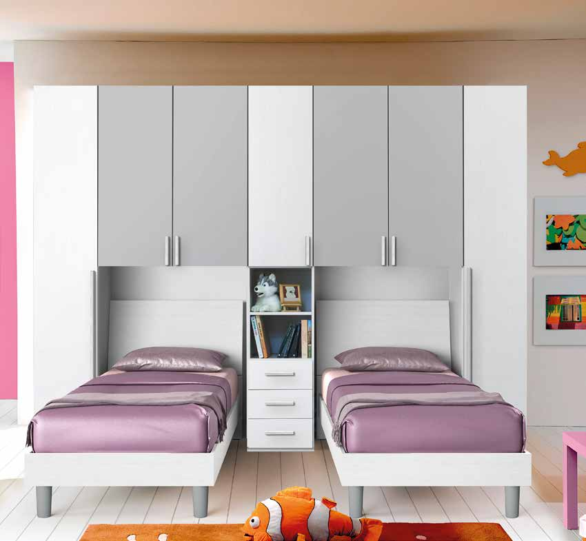 Composée de: armoire à 6 portes battantes, 2 tables de chevet à deux tiroirs, commode à trois tiroirs, lit et miroir.