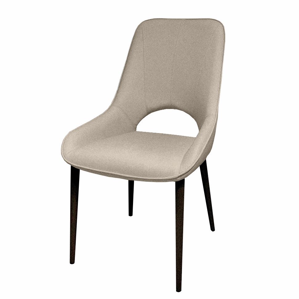 Une belle chaise avec une agréable combinaison de couleurs entre le cadre en fer et le revêtement en tissu gris. Une chaise moderne et élégante qui peut également être utilisée comme fauteuil, avec une forme originale du dossier.