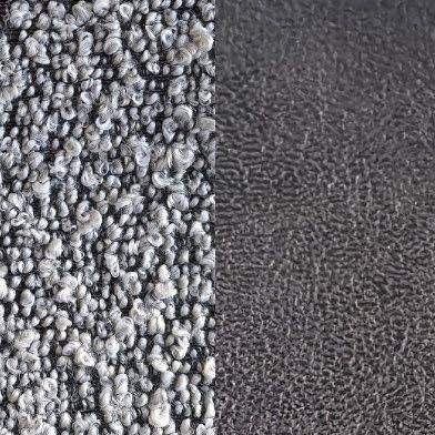 Chaise originale, ou petit fauteuil selon l'utilisation, caractérisée par une structure enveloppante en similicuir gris et une assise confortable avec dossier assorti en tissu plus clair.