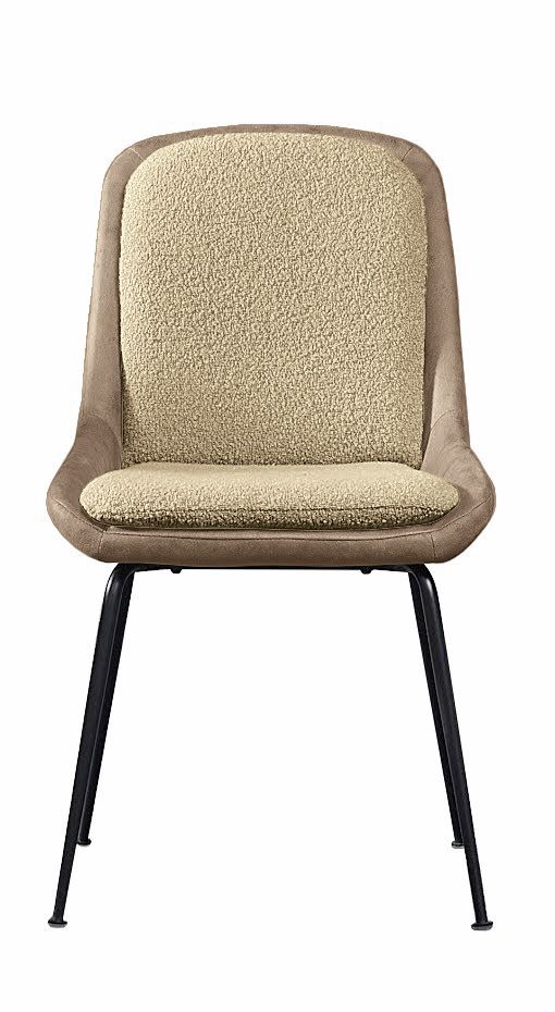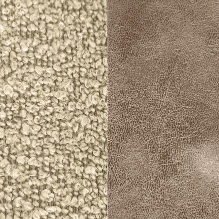Chaise ou fauteuil original, selon l'emplacement, caractérisé par une structure enveloppante en similicuir beige et une assise confortable avec dossier assorti en tissu plus clair.