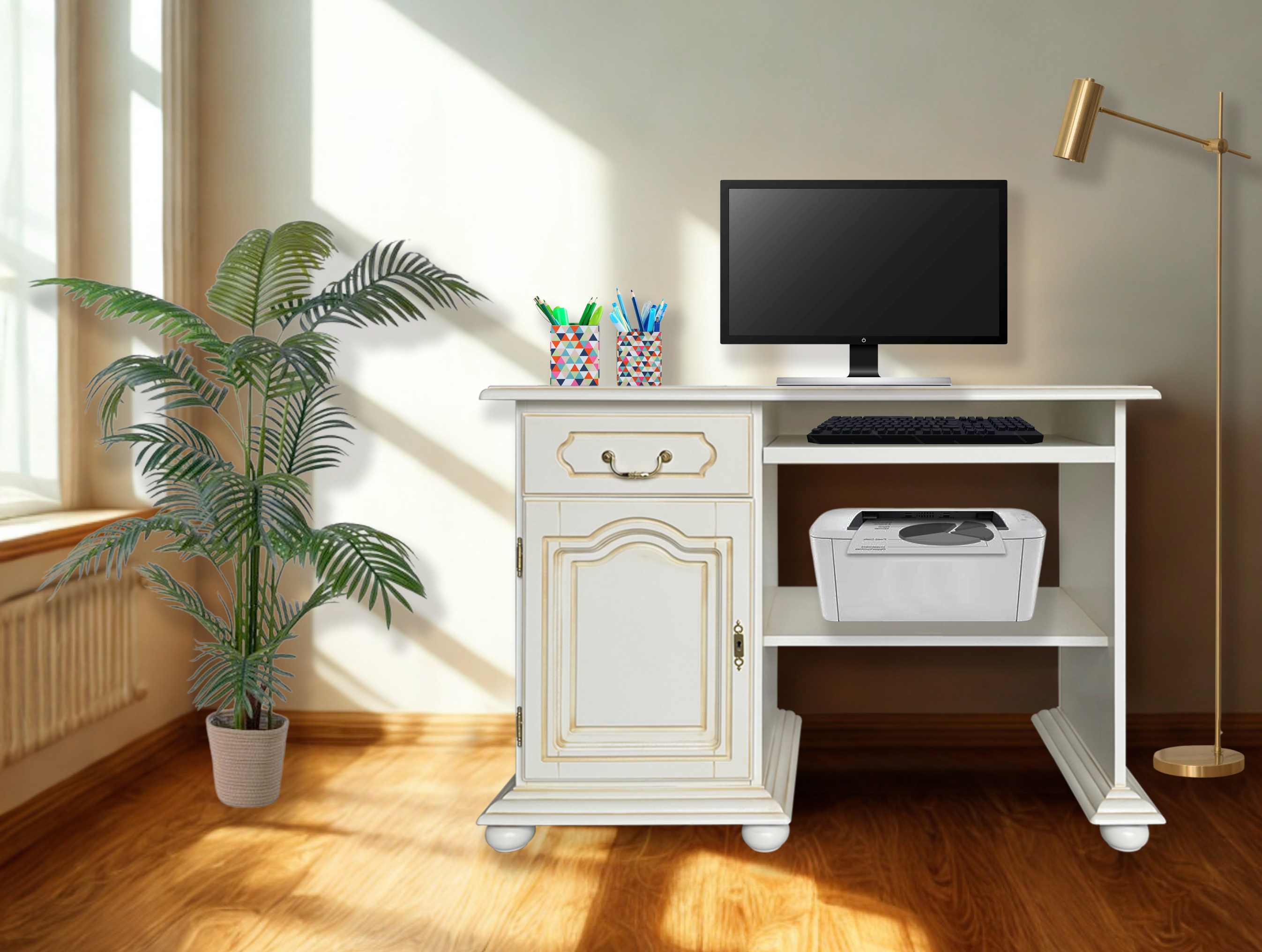 Bureau classique avec 1 porte, 1 tiroir et compartiment pour imprimante